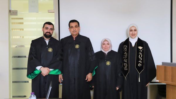 كلية الصحة العامة تناقش رسالة الطالبة ابتهاج الشويكي في ماجستير السياسات والإدارة الصحية