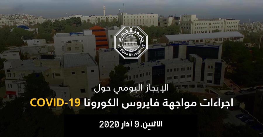 في إطار المتابعة اليومية والتقييم المستمر لتطورات أزمة الكورونا في فلسطين، تعلن جامعة القدس عما يلي: