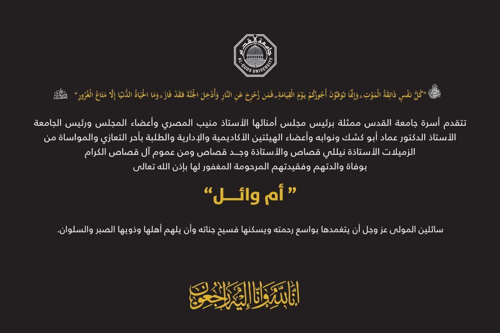 تنعى جامعة القدس السيد محمود غازي حسن جاموس