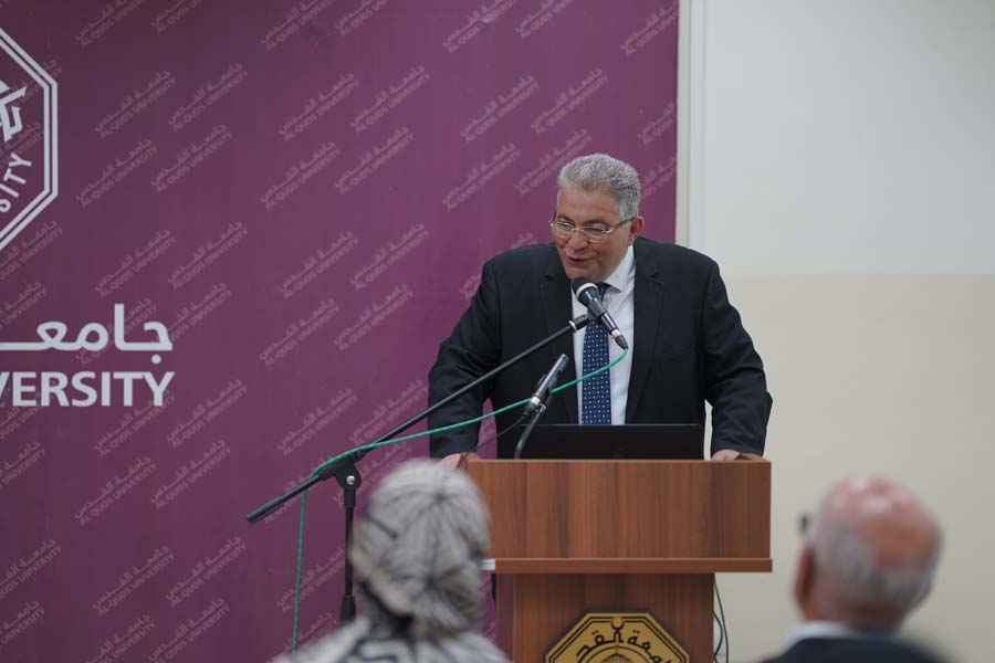 ورحب أ.د. أبو كشك بالأكاديميين الدوليين، معبرًا عن سعادته لوجودهم في حرم جامعة القدس العريقة باسمها وتاريخها ومستواها الأكاديمي، مقدمًا نبذة عن نشأتها وكلياتها ومراكزها.