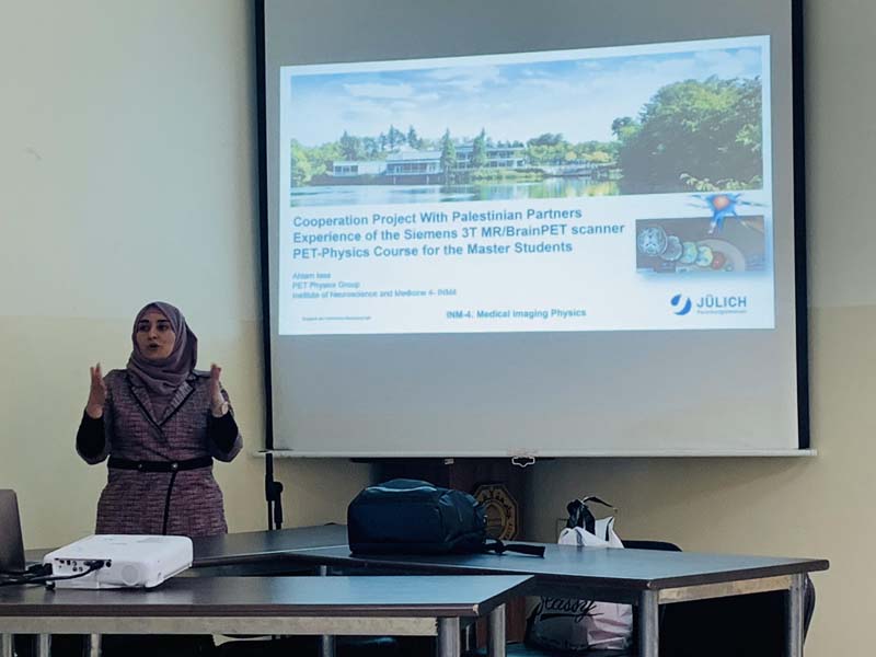 وحول موضوع المساق قالت خريجة جامعة القدس الطالبة عيسى “غطينا في المساق مجال التصوير الطبي/الطب النووي والتصوير بالانبعاث البوزيتروني، وهي تقنية مهمة في مجال التصوير الطبي