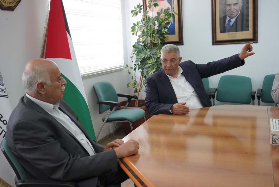 استقبل رئيس جامعة القدس أ.د. عماد أبو كشك في مكتبه في الحرم الرئيس الفريق جبريل الرجوب رئيس المجلس الأعلى للشباب والرياضة، ورئيس الاتحاد الفلسطيني لكرة القدم، وجاءت هذه الزيارة تعزيزًا لسبل التعاون بين الطرفين بما يخدم قطاع الشباب عامة وطلبة الجامعة خاصة، وتباحث الطرفين إمكانية تطوير وإضافة مرافق أخرى للملعب الدولي لكرة القدم الجاري العمل لافتتاحه قريبًا.