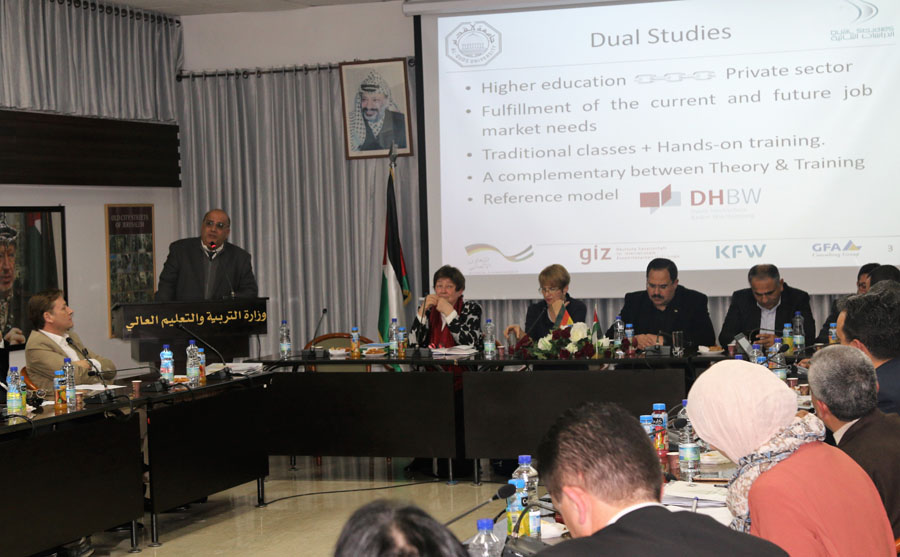 جاء ذلك خلال استضافة وزارة التربية والتعليم العالي وفداً المانيا رفيع المستوى، ترأسه كل من الدكتورة مارتينا مونش، وزيرة الدولة للعلوم والبحوث والشؤون الثقافية في ولاية براندنبورغ والدكتورة دوروثيا رولاند، الأمين العام لـDAAD  والسيد كريستيان كلاجز، رئيس مكتب التمثيل الألماني في رام الله الى جانب حضور عدد كبير من رؤساء وممثلي الجامعات الالمانية المعروفة.