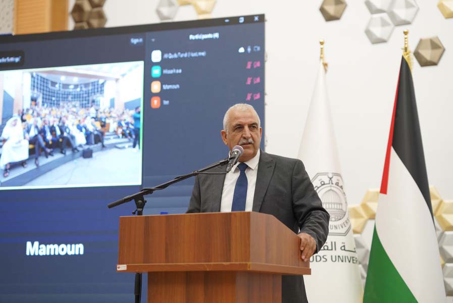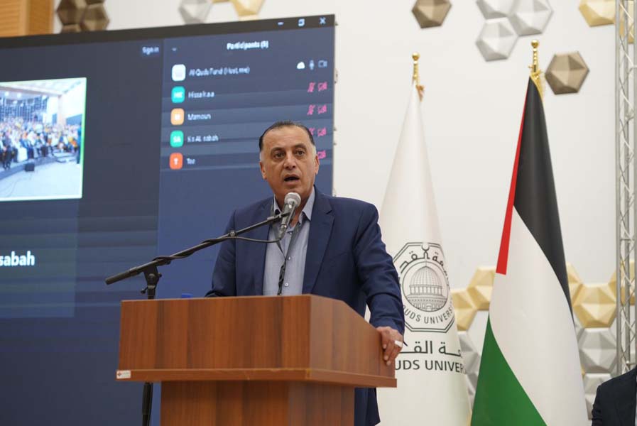 من جانبه، رحب رئيس جامعة القدس أ.د. عماد أبو كشك بضيوف المؤتمر من الدول العربية الشقيقة وصندوق وقفية القدس ومحافظتها وعموم ضيوف المؤتمر، متابعًا “نلتقي اليوم في القدس الأرض المباركة أولى القبلتين وثاني المسجدين وثالث الحرمين.. يسعدني ويشرفني أن أرحب بكم في رحاب جامعة القدس، جامعة العاصمة والعلم والعلماء والتميز والإبداع والابتكار والأولى فلسطينيًا في التدريس والبحث العلمي والأولى عربيًا في المسؤولية المجتمعية”.
