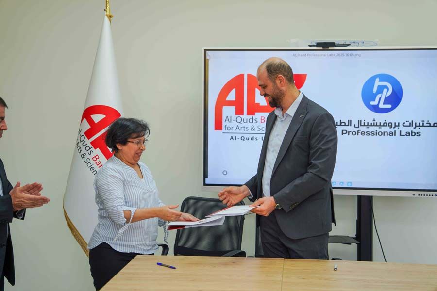 وقد وقعت الاتفاقية العميد القائم بأعمال الكلية د. آمنة بدران عن كلية القدس بارد، وعن مختبرات بروفيشنال المدير العام الأستاذ أيوب عاصي؛ وذلك في إطار تعزيز الشراكة بين القطاعين الأكاديمي والطبي، وفي خطوة تعكس حرص المؤسستين على تعزيز التكامل بين الجوانب الأكاديمية والتطبيقية.