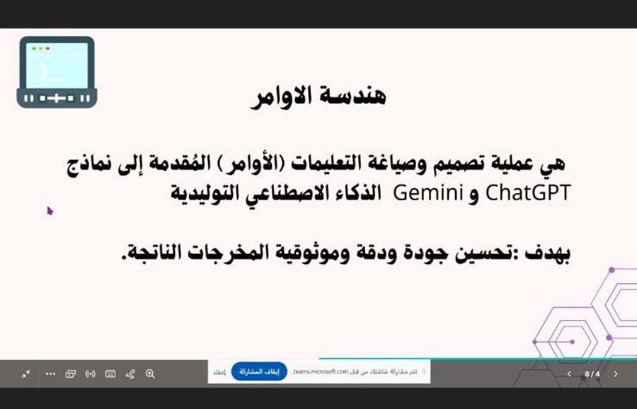 هذا وتشمل الدورة المحاور الأساسية: تصميم دروس تفاعلية متمايزة حسب المرحلة (ابتدائي/إعدادي/ثانوي)، تصميم ألعاب تعليمية إلكترونية تُبسط المفاهيم وتزيد دافعية الطلبة، إنتاج فيديوهات تعليمية قصيرة لشرح المفاهيم بصريًا وبخطوات واضحة، أدوات تقويم ذكية مدعومة بالذكاء الاصطناعي لتحليل الأداء وتحديد فجوات التعلّم، امتحانات رقمية بأسئلة تفاعلية وتحليلات فورية تدعم اتخاذ القرار التربوي.