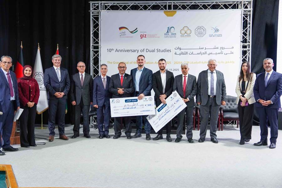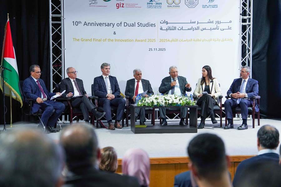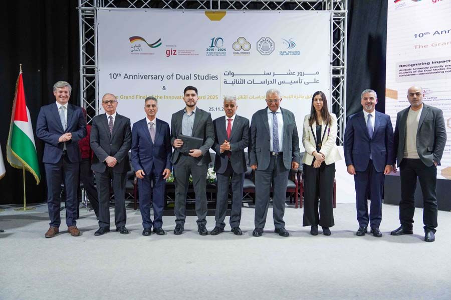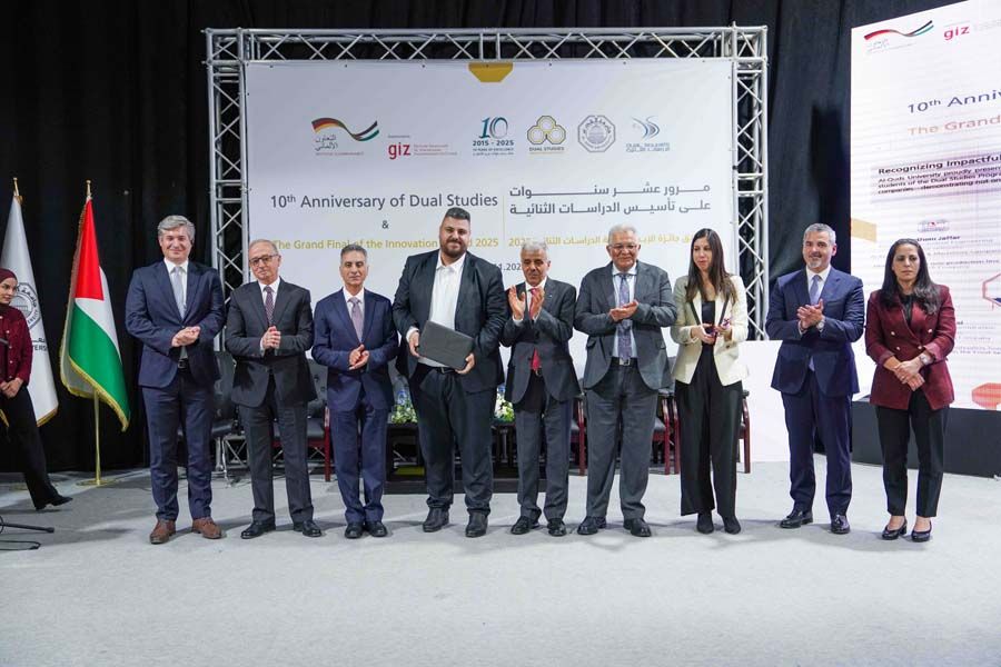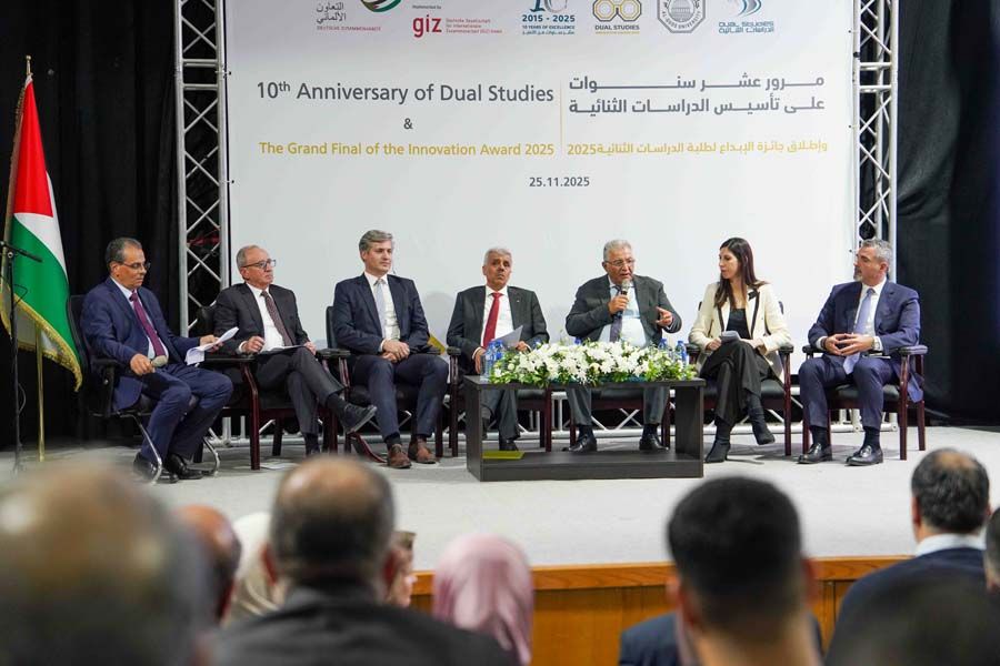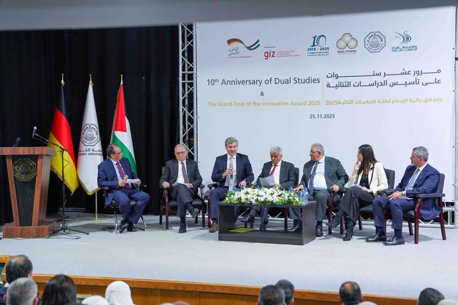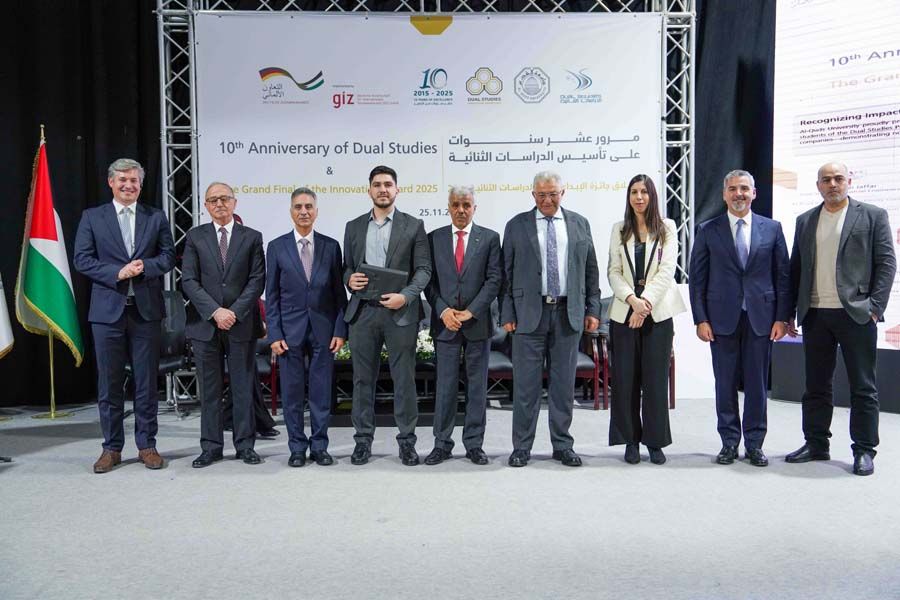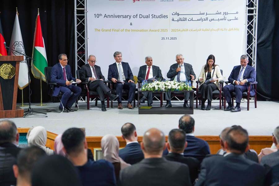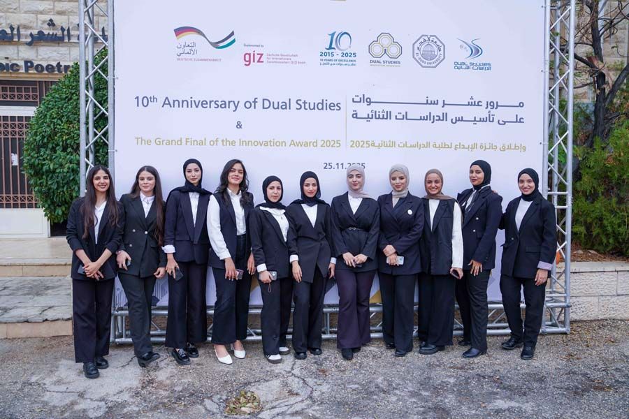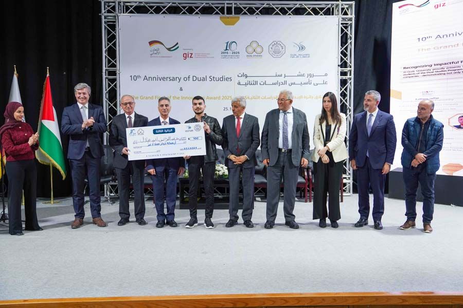 من جهته، أوضح عميد الدراسات الثنائية د. عصام إسحق أن فكرة البرنامج بدأت قبل عشرة أعوام كخطوة بسيطة، لكنها اليوم أصبحت نموذجًا وطنيًا رائدًا يحتذى به، وجاء نتيجة شراكة متينة بين جامعة القدس ووزارة التربية والتعليم، والداعمين الألمان، وأكثر من 300 شركة وطنية، مشيرًا إلى أن الحفل يشكل محطة مهمة في مسيرة برنامج نجح في مواءمة التعليم مع متطلبات سوق العمل.