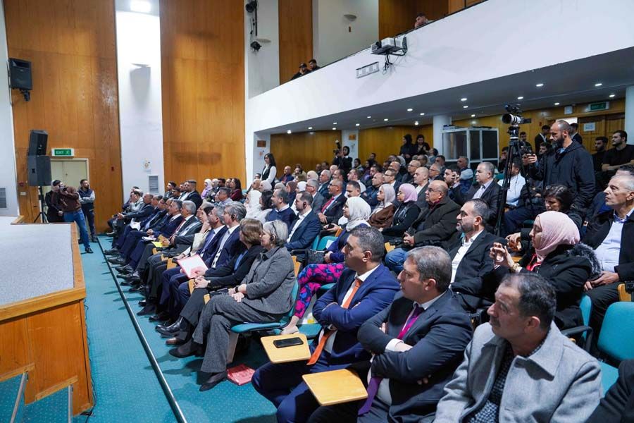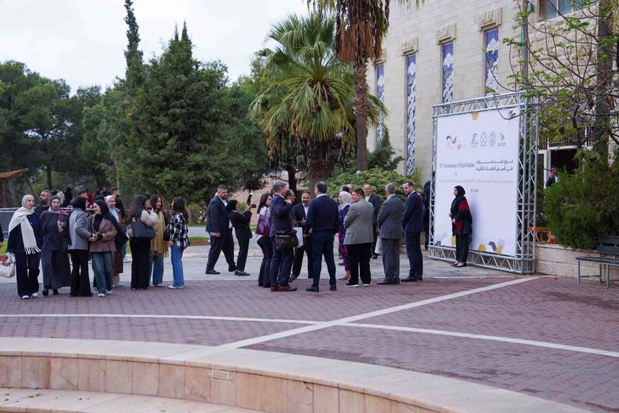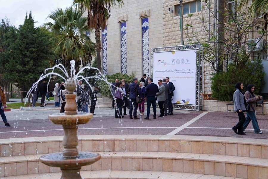 احتفلت جامعة القدس بمرور عشرة أعوام على تأسيس برنامج الدراسات الثنائية، إلى جانب تتويج الفائزين بـجائزة الإبداع 2025، وذلك خلال حفل رسمي أقيم بحضور أكثر من 200 ممثل من القطاعين العام والخاص، إضافة إلى ممثلين عن وزارة التربية والتعليم العالي والحكومة الألمانية والوكالة الألمانية للتعاون الدولي GIZ، ولفيف من الأكاديميين والطلبة.