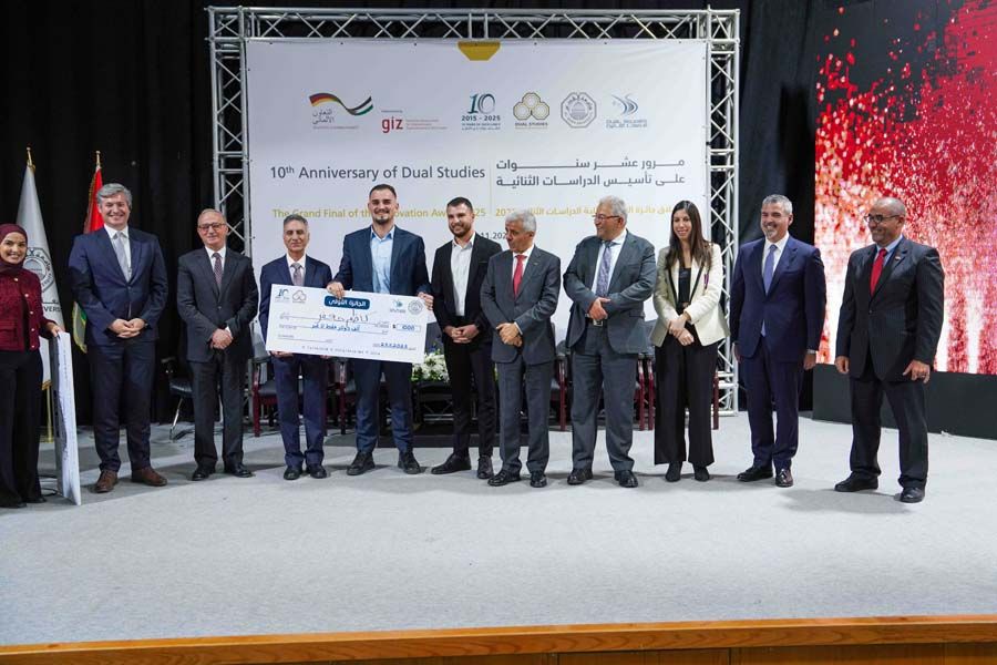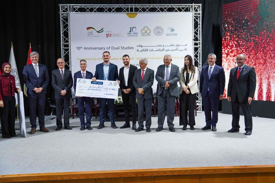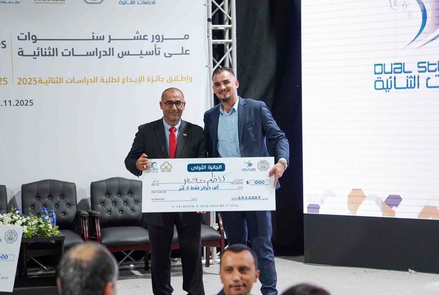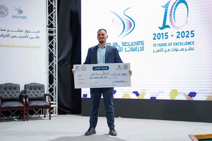 كما شهد الحفل عرض أفضل خمسة مشاريع تخرج من برامج الدراسات الثنائية، التي قدمت حلولًا مبتكرة للشركات التي تدرب فيها الطلبة في مجالات الذكاء الاصطناعي، والتسويق الرقمي، والهندسة. وبعد تقييم لجنة التحكيم وتصويت الحضور، تم تكريم أفضل ثلاثة مشاريع لفوزها بجائزة الإبداع لطلبة الدراسات الثنائية 2025.