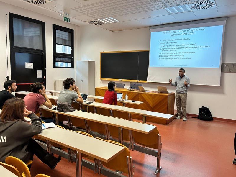 قام الأستاذ قاسم عوض من دائرة إدارة الأعمال في برنامج الدراسات الثنائية بكلية الأعمال والاقتصاد بزيارة أكاديمية إلى جامعة فلورنسا في إيطاليا، حيث قدّم محاضرتين متخصصتين حول سلاسل الإمداد في القطاع الزراعي في فلسطين.