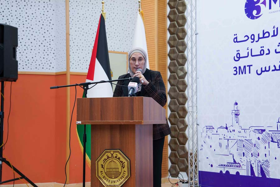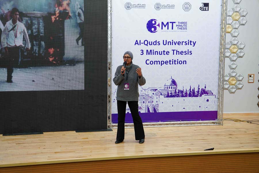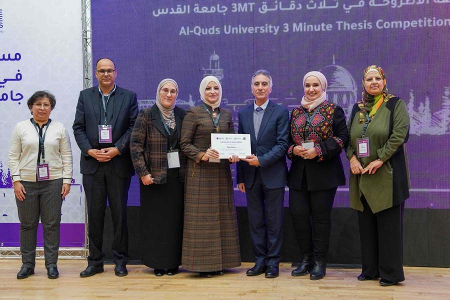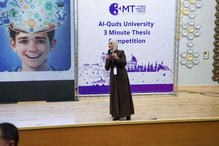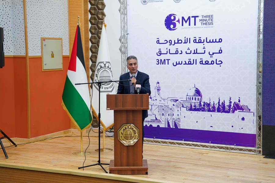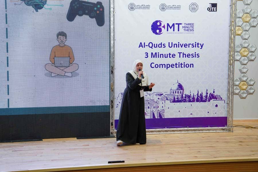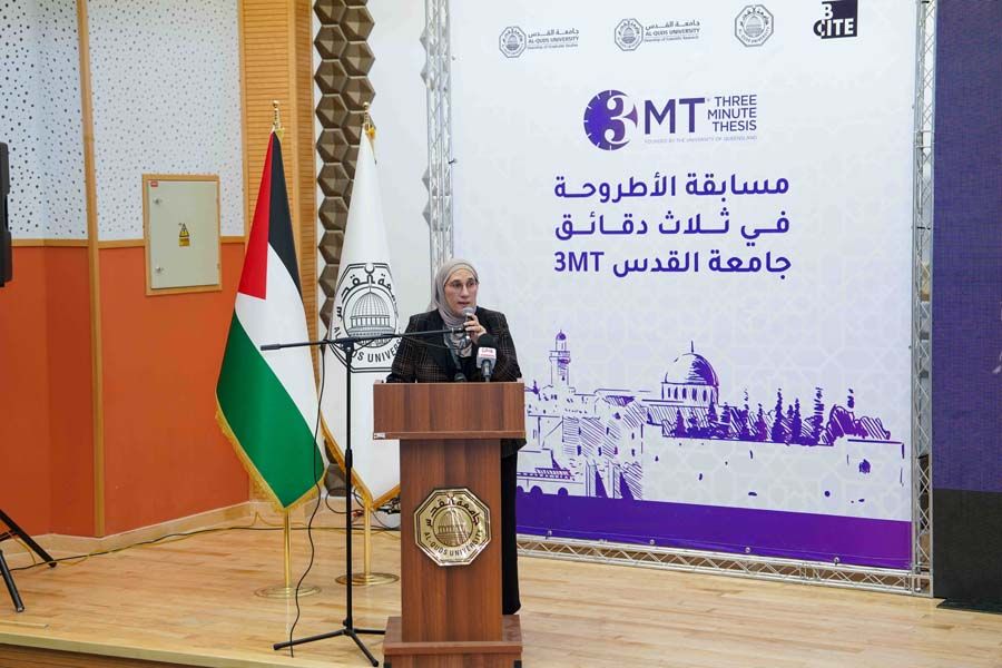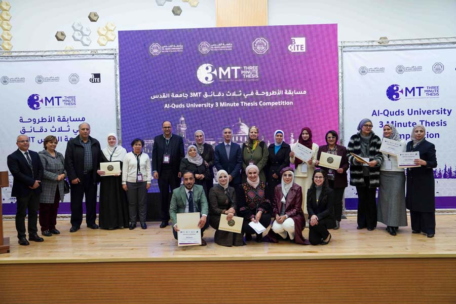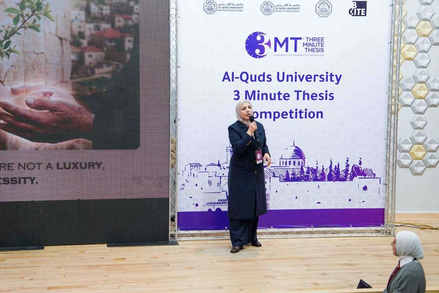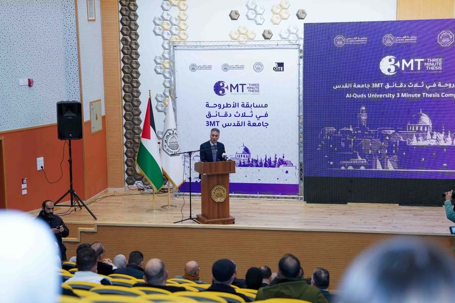 يشار إلى أن مسابقة (3MT (Three Minute Thesis تعقد لأول مرة في فلسطين، وهي مسابقة أكاديمية عالمية تتيح لطلبة الدراسات العليا تقديم أبحاثهم العلمية في ثلاث دقائق فقط، وباستخدام شريحة عرض واحدة ثابتة، مع التركيز على تبسيط الفكرة البحثية وتوضيح أهميتها بلغة واضحة وجذابة لغير المتخصصين.