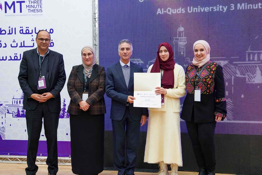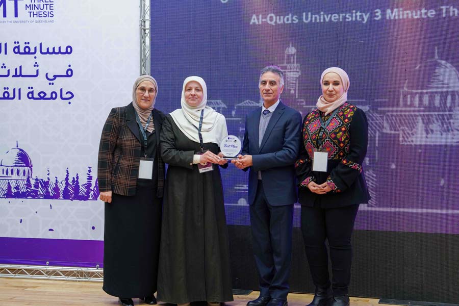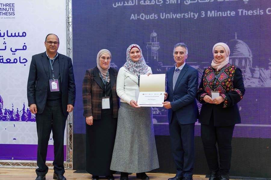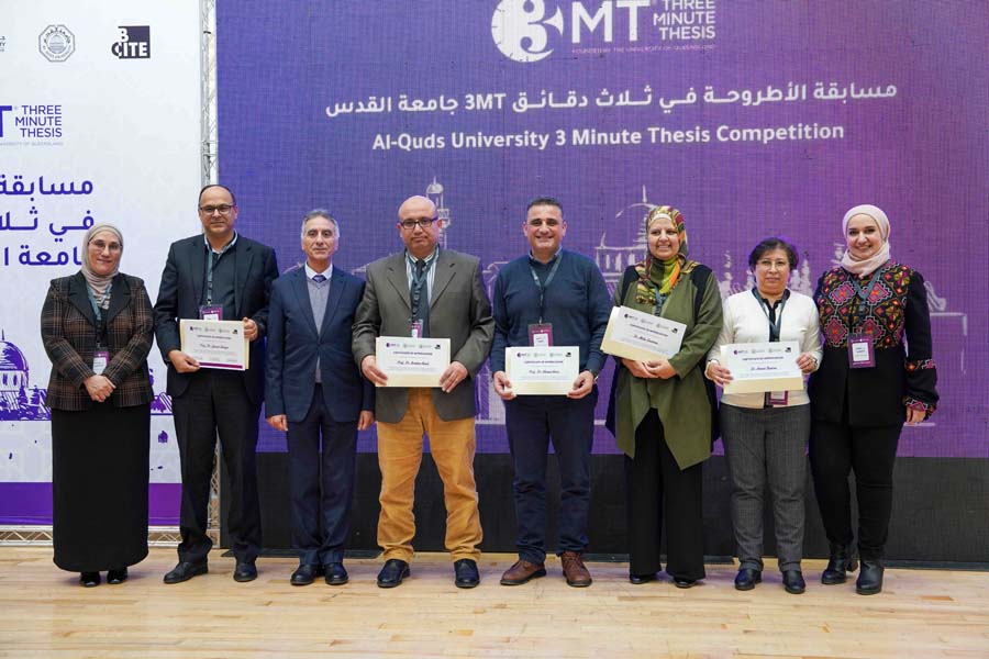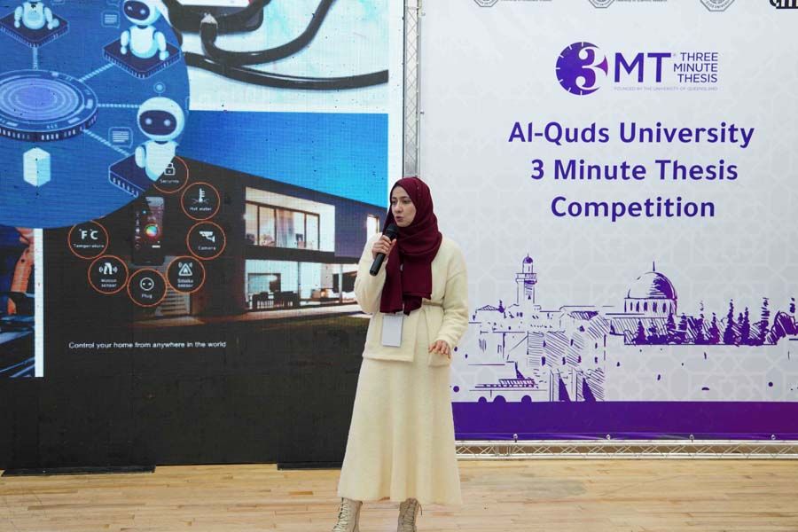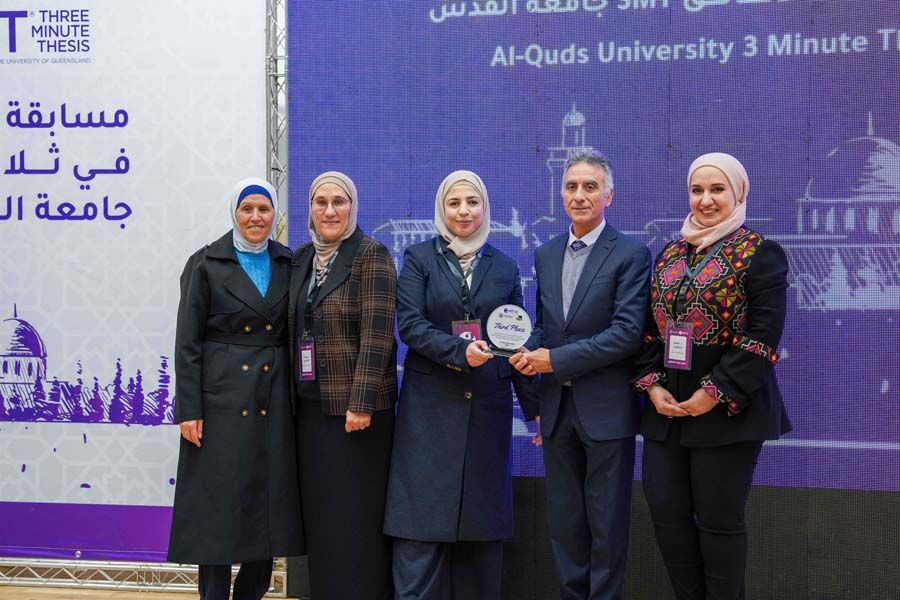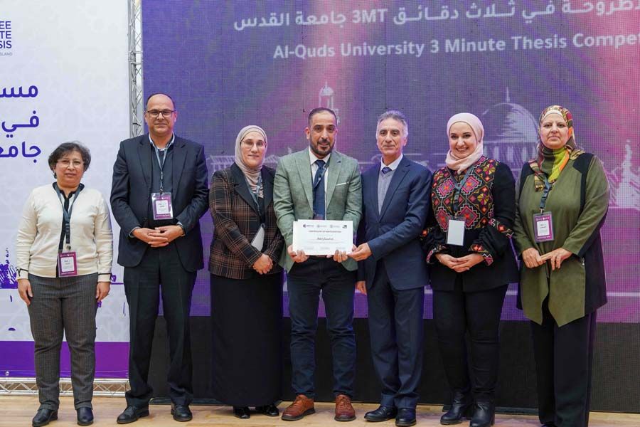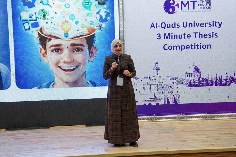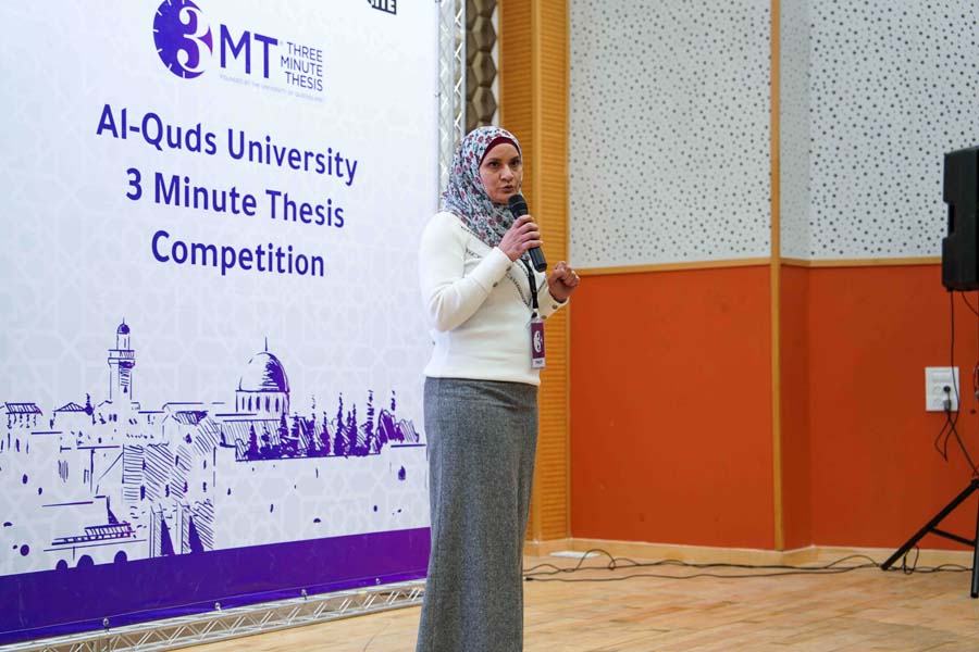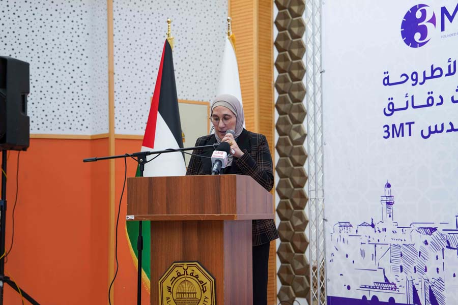 يشار إلى أن مسابقة (3MT (Three Minute Thesis تعقد لأول مرة في فلسطين، وهي مسابقة أكاديمية عالمية تتيح لطلبة الدراسات العليا تقديم أبحاثهم العلمية في ثلاث دقائق فقط، وباستخدام شريحة عرض واحدة ثابتة، مع التركيز على تبسيط الفكرة البحثية وتوضيح أهميتها بلغة واضحة وجذابة لغير المتخصصين.