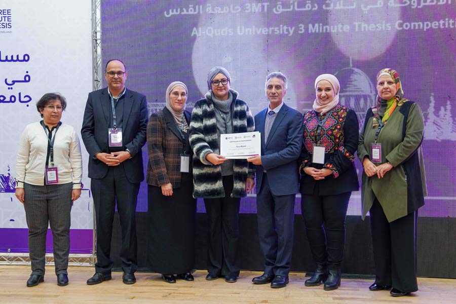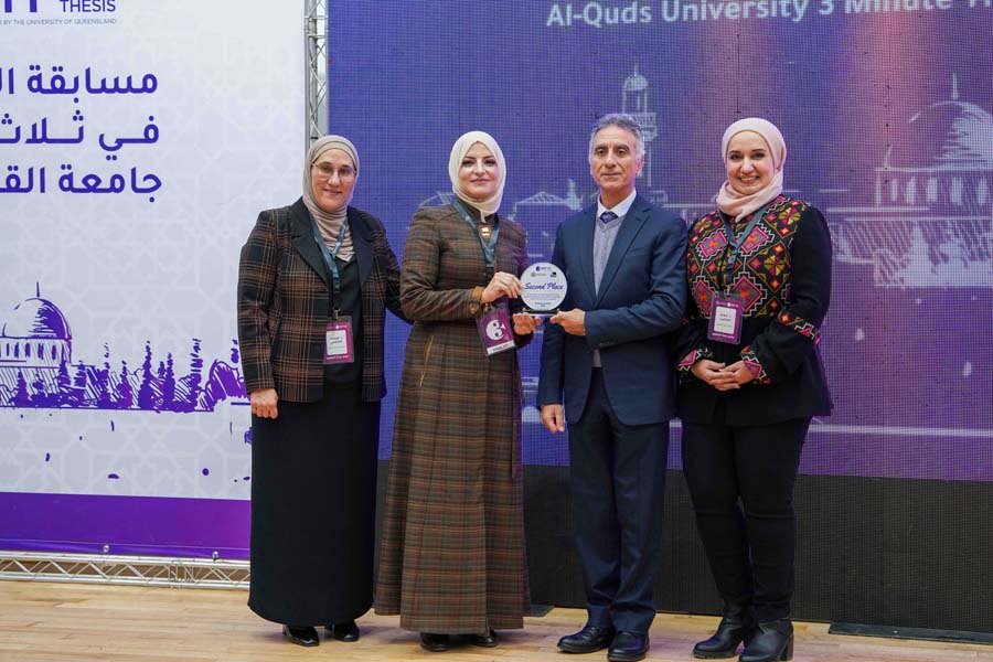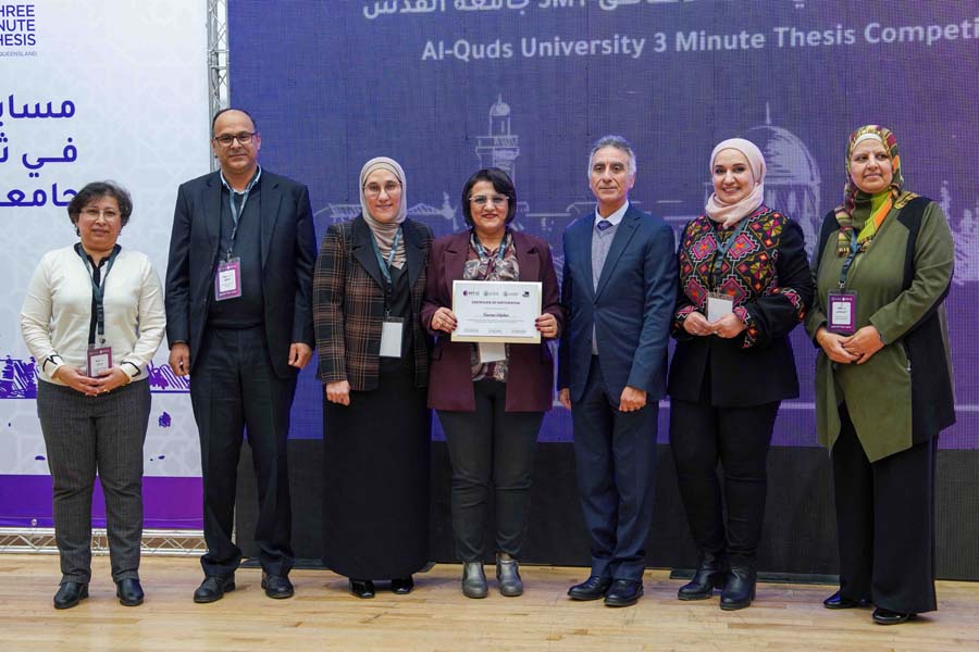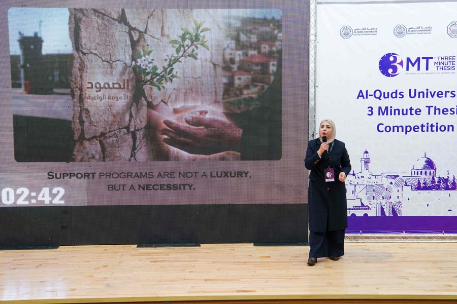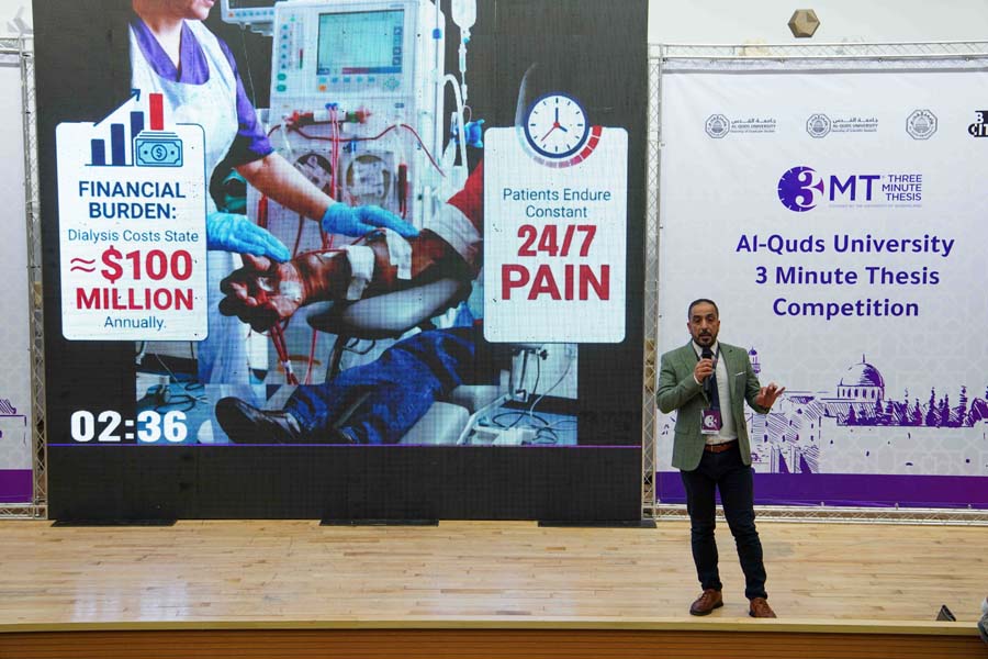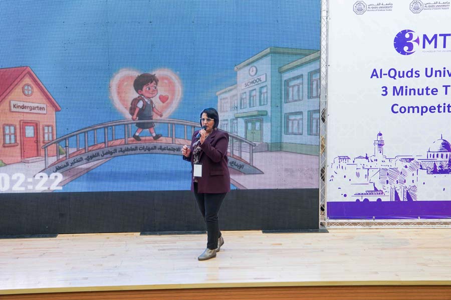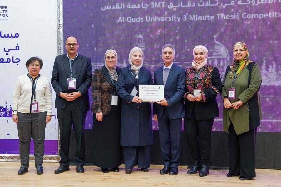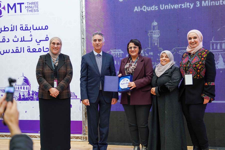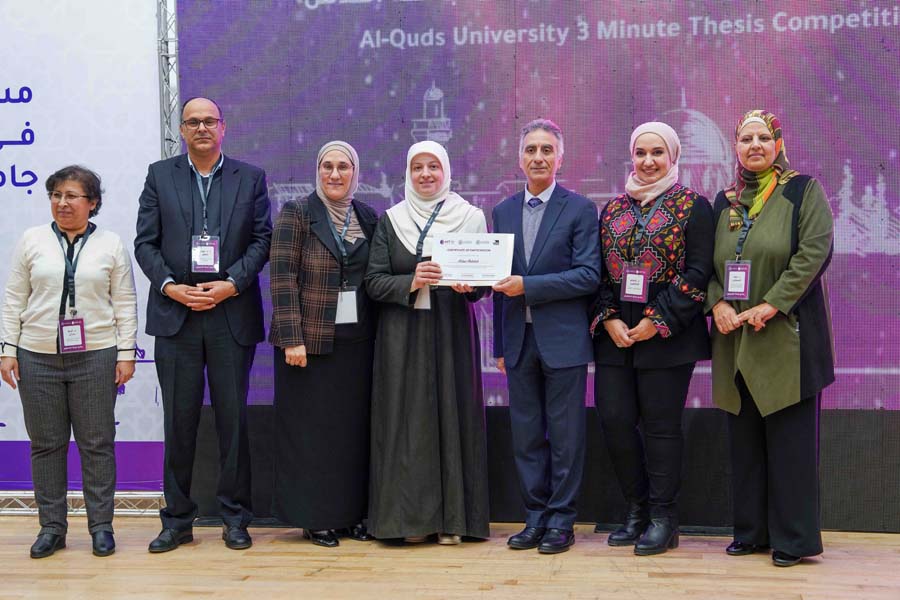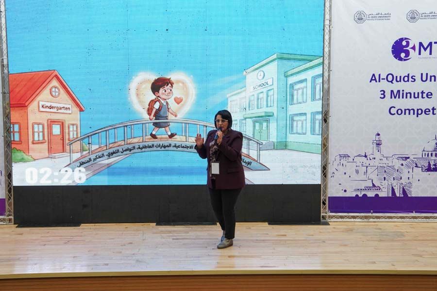 يشار إلى أن مسابقة (3MT (Three Minute Thesis تعقد لأول مرة في فلسطين، وهي مسابقة أكاديمية عالمية تتيح لطلبة الدراسات العليا تقديم أبحاثهم العلمية في ثلاث دقائق فقط، وباستخدام شريحة عرض واحدة ثابتة، مع التركيز على تبسيط الفكرة البحثية وتوضيح أهميتها بلغة واضحة وجذابة لغير المتخصصين.