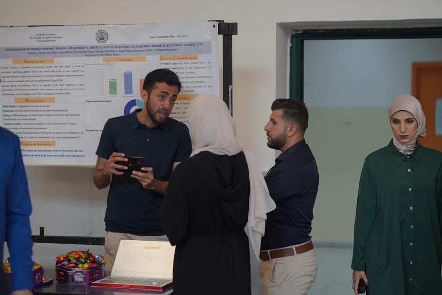 وعبر أ.د. عماد أبو كشك عن فخره بما قدمه الطلبة من مشاريع مميزة ومتنوعة، تتناول الجانب الصحي في فلسطين والعالم وتقدم الحلول لمشكلاته المختلفة، وأعلن تبنيه لأفضل مشروعين إبداعيين لتطويرهم وتطبيقهم، مشيدًا بأفكار الطلبة التي كانت محور دراستهم البحثية، وبجهود المشرفين عليهم.
