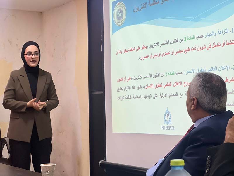وتطرّق النقاش إلى مدى مساهمة هذا التعاون في تحقيق العدالة وإنفاذ القانون، من خلال تبادل المعلومات وتعزيز التنسيق مع الدول الأعضاء. وشهدت الجلسة تفاعلاً مميّزًا من طلبة المساق الذين قدّموا أسئلة وتحليلات قانونية أغنت الحوار وأسهمت في توسيع النقاش.