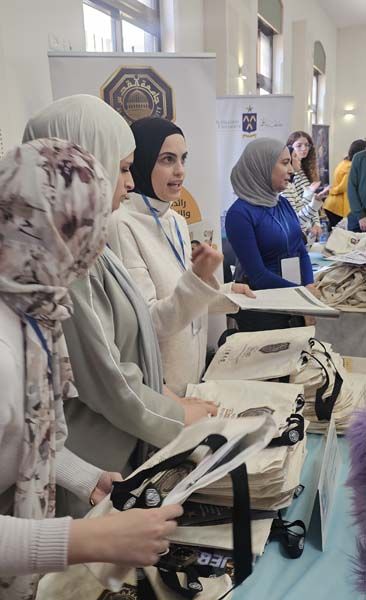وضم وفد الجامعة المشارك في الفعالية مديرة القبول د. هدى حجة، ، والأستاذة عالية مصلح من كلية هند الحسيني، إلى جانب مجموعة من طالبات الكلية المتطوعات اللواتي أسهمن في الإرشاد وتنظيم المشاركة.