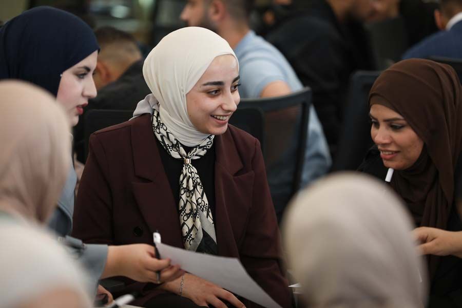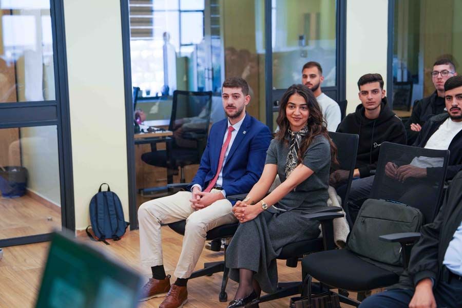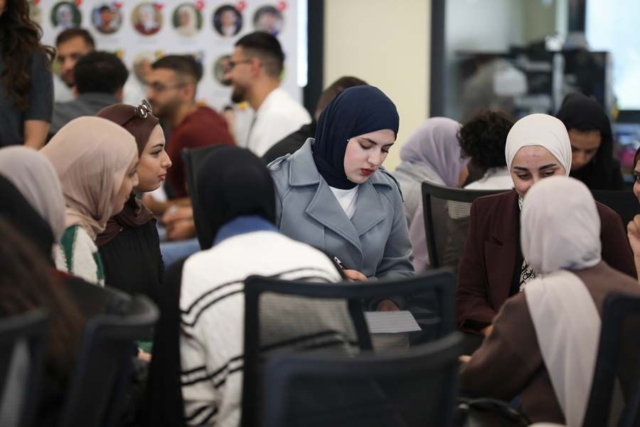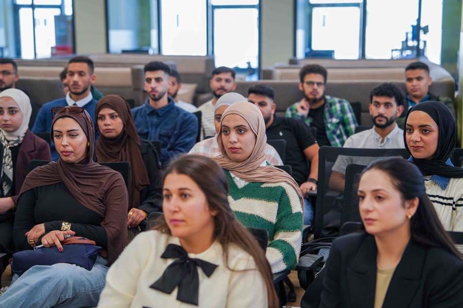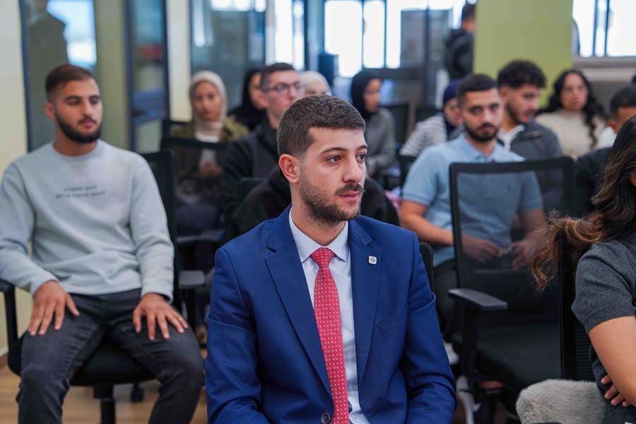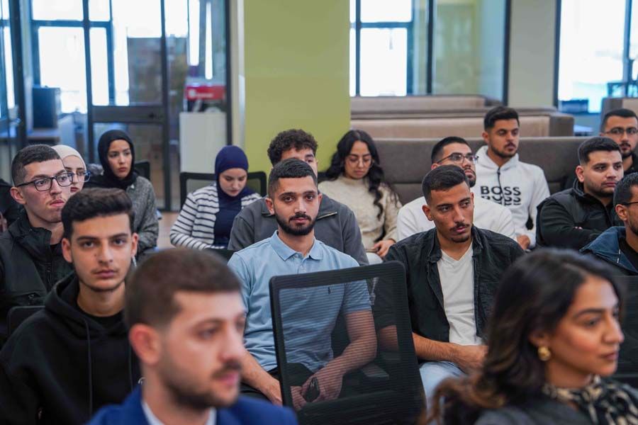 وتضمّن اللقاء عقد دورة تدريبية متخصصة في مهارات التواصل الإلكتروني والوجاهي، بالتنسيق مع مركز التطوير المهني في جامعة القدس ومؤسسة “إنجاز فلسطين”، وبمشاركة مدربين من بنك القدس: المدرب كريم حاتم الشاعر والمدربة فيروز ماهر صوان، حيث هدفت الدورة إلى تطوير مهارات الطلبة في الاتصال والتعبير والتفاعل ضمن البيئات الدولية.