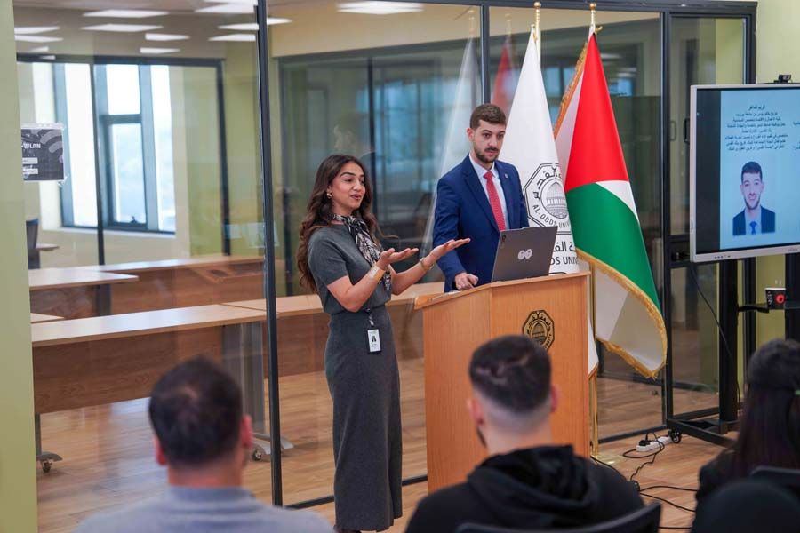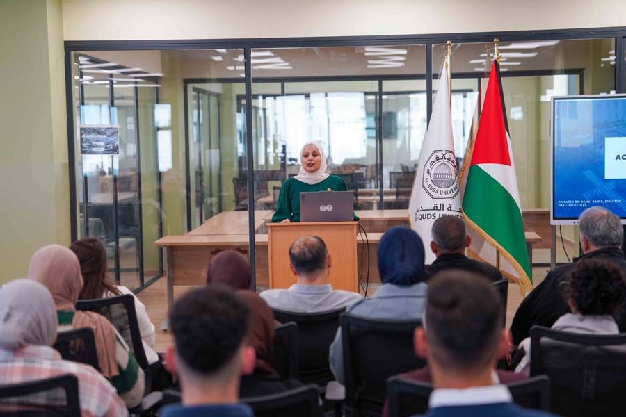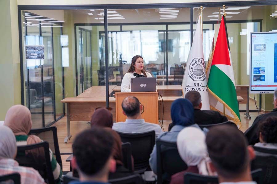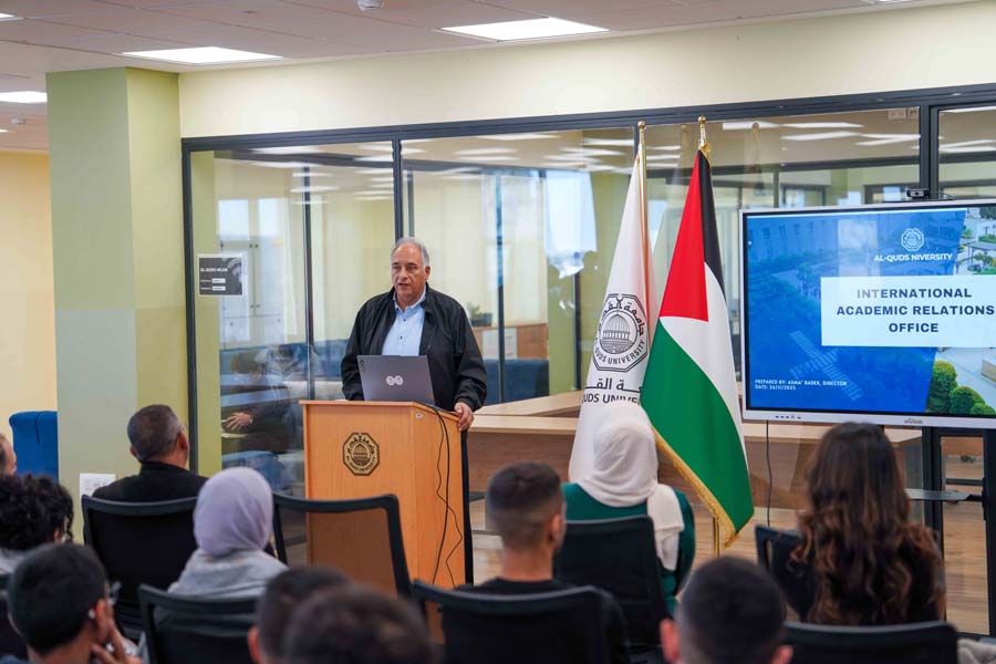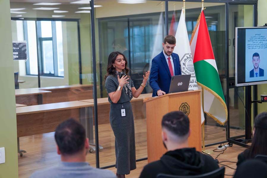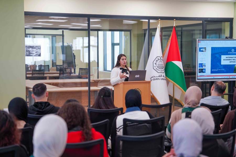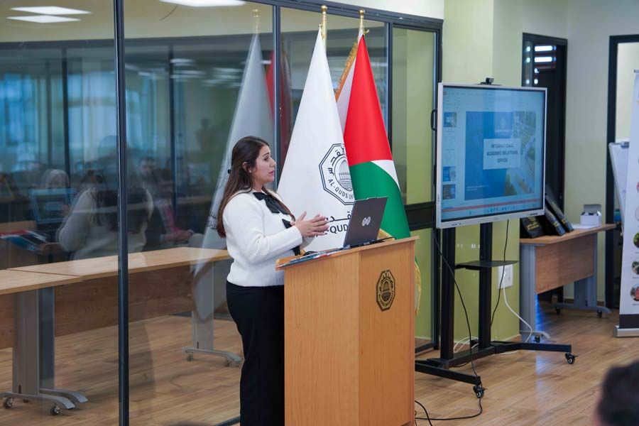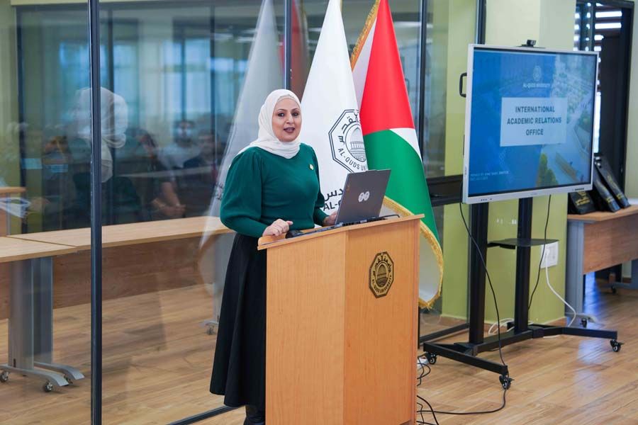وقدمت أ. أسماء بدر عرضًا حول أهم إنجازات مكتب العلاقات الأكاديمية الدولية والبرامج التي يشرف عليها، وتعدد الشراكات التي تربط جامعة القدس بعدد كبير من الجامعات حول العالم.