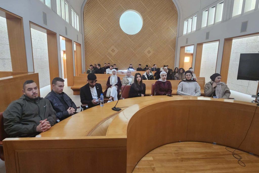 بدأ طلبة بكالوريوس القانون- فرعي القانون الإسرائيلي بزيارة قانونية تعليمية إلى محكمة العدل العليا للتدريب على المهارات وجوانب المعرفة القانونية في مجال القانون الجنائي وقانون الإجراءات الجزائية المطبق في الداخل، لما تمثله هذه المعرفة من ربط الإطار النظري بالجوانب العملية، وتم من خلال هذه الزيارة حضور ومشاهدة الطلبة لقضية جنائية متعددة الجوانب أمام محكمة العدل العليا، وبحضور الأستاذ المشرف الدكتور ضرغام سيف في زيارة هي الأولى من نوعها لطلبة برنامج القانون في حرم القدس.