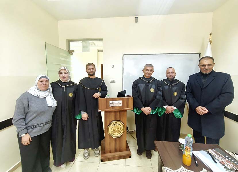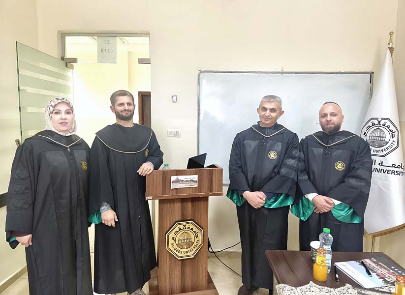 وتكونت لجنة المناقشة من مشرفة الطالب ورئيس اللجنة الدكتورة إسراء حمدان، والممتحن الداخلي الدكتور أكرم عمرو من دائرة العلاج الطبيعي، والممتحن الخارجي الدكتور عزام العرب من جامعة فلسطين الأهلية -بيت لحم.
