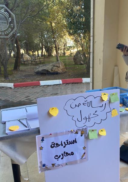 نفّذ طلبة دائرة الخدمة الاجتماعية في جامعة القدس مبادرة بعنوان “استراحة مقاتل”، وذلك بهدف التخفيف من الضغوط النفسية المصاحبة لفترة الامتحانات، وتعزيز الصحة النفسية لدى الطلبة داخل الحرم الجامعي.