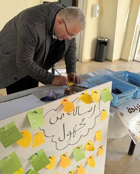 وتضمّنت المبادرة نشاطًا تفريغيًا تفاعليًا، أُتيح خلاله للطلبة التعبير عن مشاعرهم وضغوطاتهم من خلال الكتابة على لوح مخصص للمشاعر، في أجواء داعمة ومشجعة، بما يسهم في التنفيس الانفعالي وتحقيق قدر من الارتياح النفسي قبل دخول قاعات الامتحان.