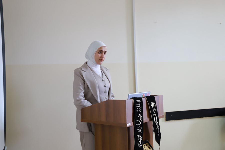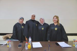 وتألفت لجنة المناقشة من الدكتورة ابتسام دويكات مشرفةً على الرسالة، والدكتورة مها نحّال ممتحِنةً داخلية، والدكتورة عائدة القيسي ممتحِنةً خارجية.