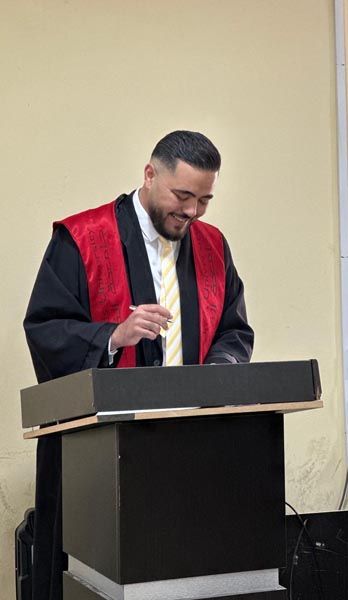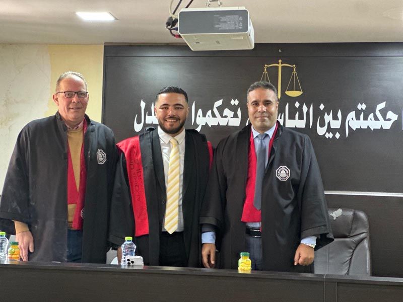 وتألفت لجنة المناقشة من الدكتور ياسر زبيدات مشرفًا على الرسالة ورئيسًا للجنة، والدكتور محمد خلف ممتحنًا داخليًا، والدكتور أشرف ملحم ممتحنًا خارجيًا.