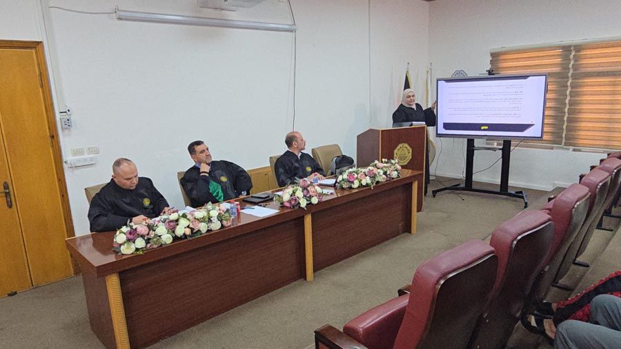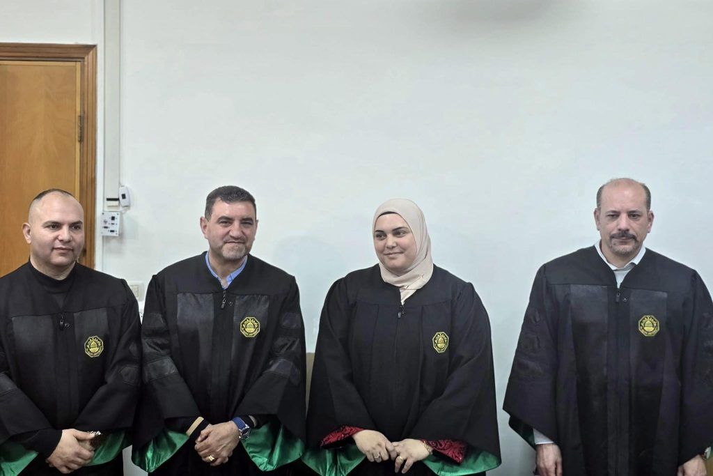 وتكونت لجنة المناقشة من د. محمد عوض مشرفًا ورئيسًا، د. نضال درويش ممتحنًا داخليًا، د. يحيى فحماوي ممتحنًا خارجيًا.