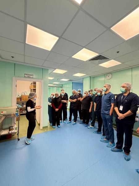 وضمن توجه سيرجيكور نحو التعليم السريري المبكر، تم اختيار عدد من طلبة المرحلة الأساسية في كلية الطب للمشاركة ضمن برنامج Surgical Shadowing، حيث أُتيحت لهم فرصة حضور عملية إصلاح فتق السرة (Umbilical Hernia) داخل غرفة العمليات، في تجربة تعليمية مباشرة هدفت إلى ربط ما تم تدريسه نظريًا وعمليًا بالتطبيق الجراحي الواقعي.