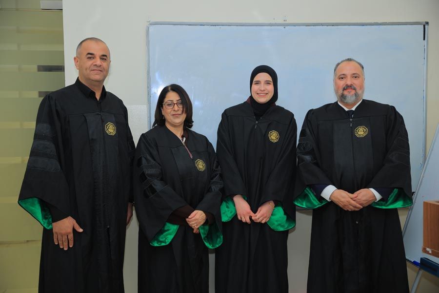 وتكوّنت لجنة المناقشة من: د. عبدالله الواوي رئيسًا للجنة ومشرفًا على الرسالة، ود. سلام الخطيب ممتحنًا داخليًا، ود. أحمد حننية ممتحنًا خارجيًا من جامعة النجاح الوطنية.