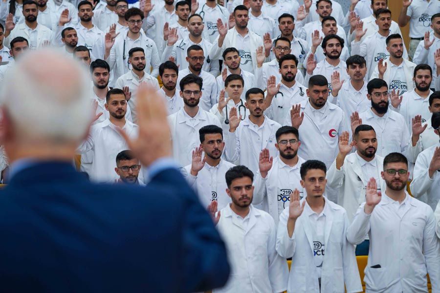 The Faculty is driven by passionate dedicated staff members and attracts promising resilient students and we are committed to building within Al-Quds University an outstanding medical faculty, set to equip our students with the right competencies and produce qualified physicians empowered with the knowledge, skills and personalities that will enable them to transform the future of healthcare in Palestine and the surrounding region.