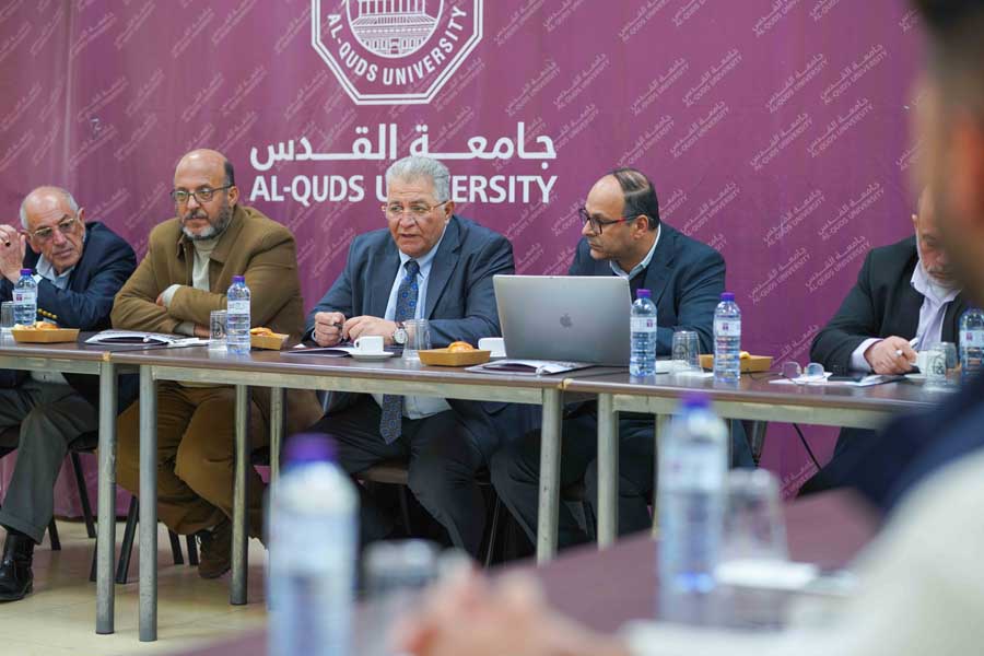 Al-Quds University recently hosted a workshop titled “Researching the launch of innovative investment projects to reduce the amount of waste in the northeast and southeast areas of Jerusalem.” The event was chaired by the University President, Prof. Imad Abu Kishk, and Vice President for Planning, Development and Quality Affairs Prof. Dr. Jawad Shuqeir. The event also featured the participation of Director General of Joint Councils at the Ministry of Local Government Mr. Walid Abu Halawa, representatives of municipalities in the region, and local officials and experts. The workshop centered on the implementation of sorting, separation, and composting techniques through the aerobic digestion process. The objective of this approach is to enhance waste management and to achieve environmental and economic benefits for the local community.